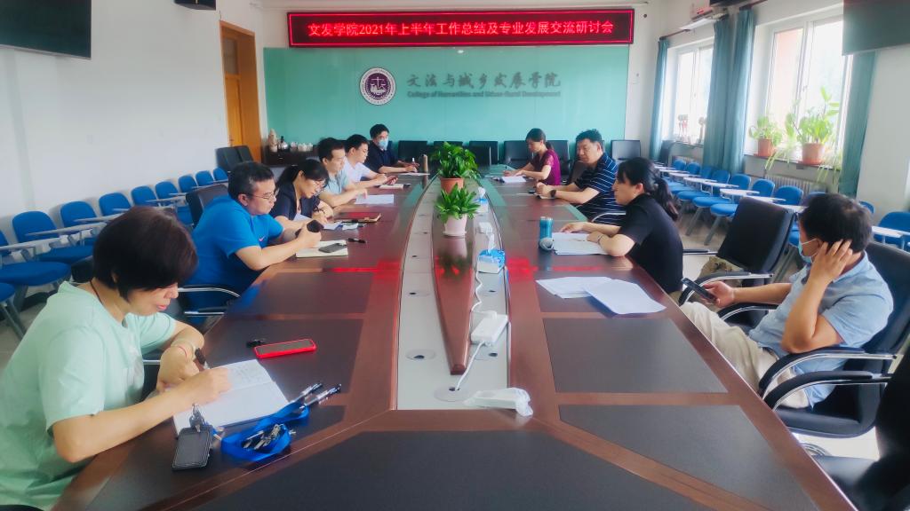 2021年7月15日下午,文发学院2021年上半年工作总结及专业建设与发展研讨会在文发楼322室召开,会议系统梳理了本学期工作,研讨谋划学院发展方向。会议由院长韩芳主持。