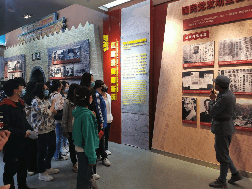 下午13:10师生们在文发楼一层准时集合依次测量体温后,有序上车。到达目的地后,由纪念馆的讲解员为师生进行讲解。讲解员分别从昌平地方党组织的建立和发展、为抗日战争胜利而奋斗、夺取人民解放战争的胜利三个部分进行介绍。通过观看人物照片、复原场景、历史绘画、电子沙盘、文字解说等,使得大家详实地了解了1949年中华人民共和国成立之前的昌平地区百年斗争历史,对于昌平这片具有光荣革命传统的红色热土有了进一步认识。昌平人民在党的领导下所进行的艰苦卓绝的斗争,给予了我们一次深刻的革命历史教育。
