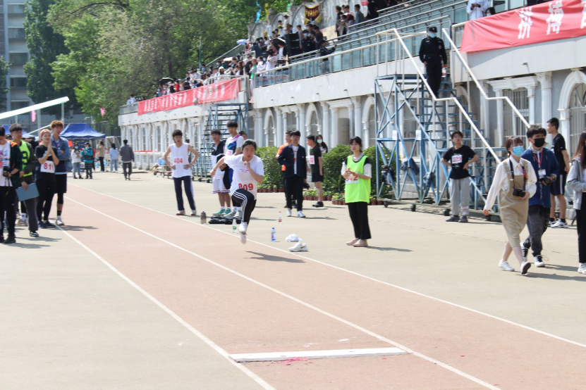 观众席上也是情绪热烈,每当赛道上有我院运动员,呐喊声,加油声,连绵不断。这声音就像一股无形的力量,激励着运动员奋勇向前,努力拼搏,伴随着阵阵助威声,运动员夺得了一个又一个优异的成绩。