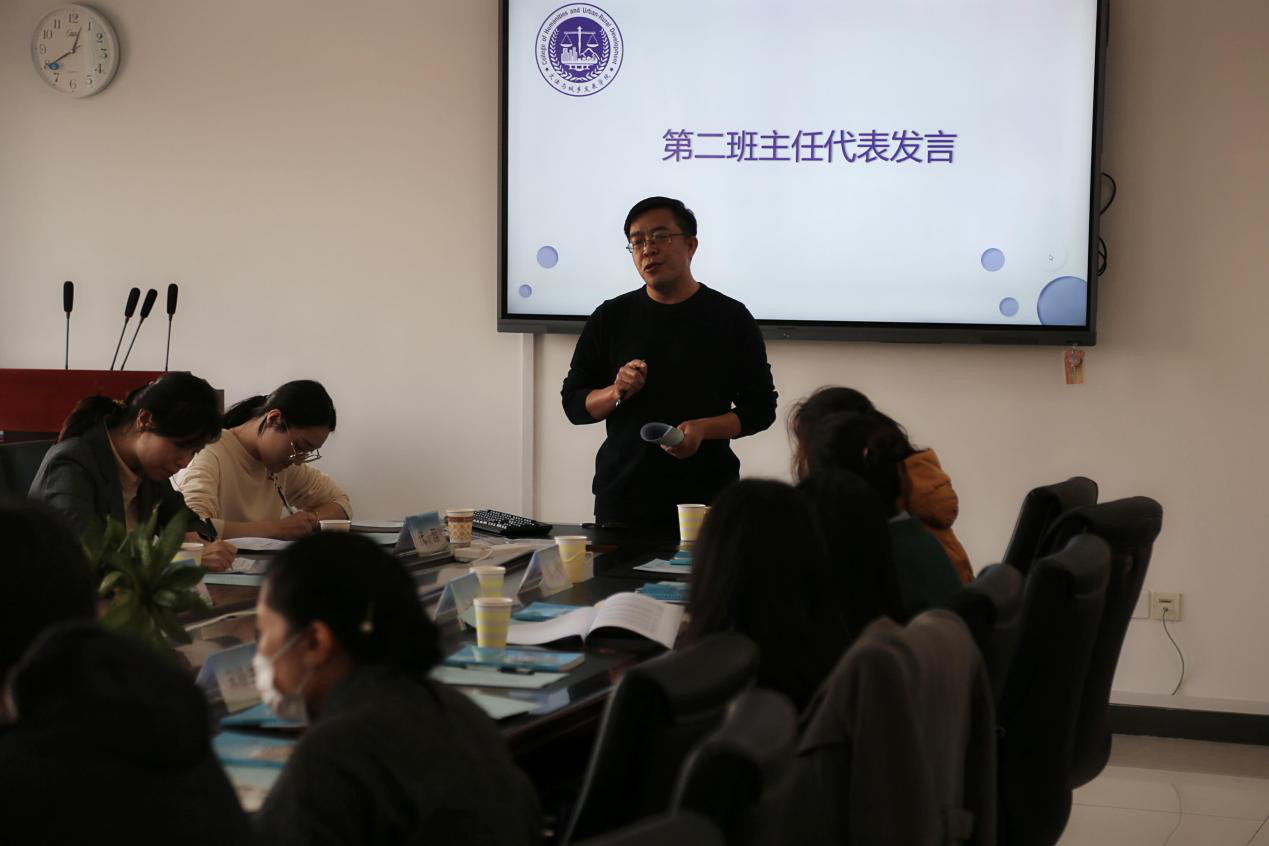 会议第六项,班主任与第二班主任交流工作细节,旅管一班班主任张鲸老师认为第二班主任制度很好,班主任可以从专业课角度进行指导,第二班主任可以从思想上给予指导和关怀,做到切实引导。