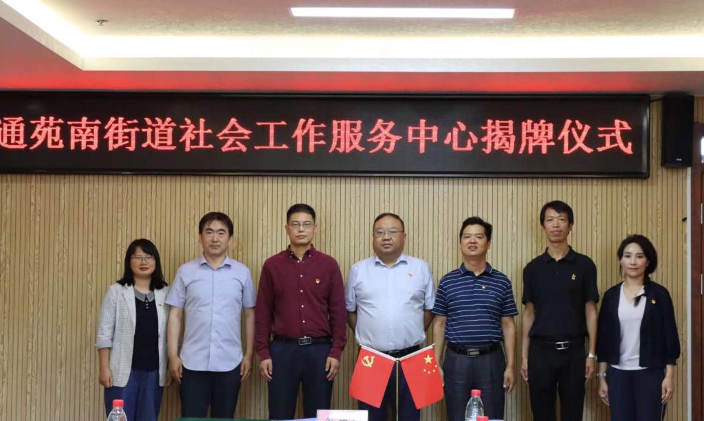 9月21日,天通苑南街道社会工作服务中心揭牌仪式在昌平区天通苑南街道党群服务中心顺利举行。北京市昌平区委社工委委员、区民政局副局长徐湘涛,天通苑南街道工委书记马源洪、办事处副主任黄东宇、办事处副主任格来卓玛、办事处社区建设办公室副科长程鹏等领导出席了揭牌仪式。昌平区社会工作指导中心副主任卢玲,3044永利集团副院长龚刚强、社会工作教工党支部书记孙贝贝、社会工作系主任胡勇等专家全程参与。