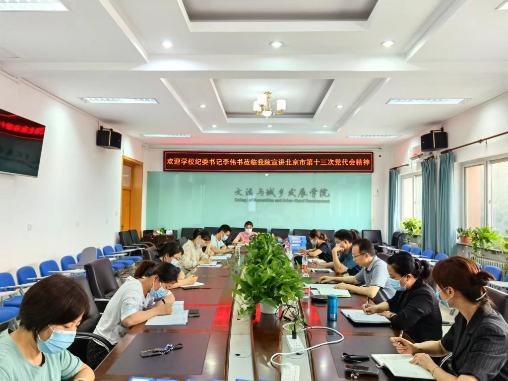 7月11日下午,学校党委常委、纪委书记李伟书莅临文发学院为全体教职工和学生党员宣讲北京市第十三次党代会精神,会议由文发学院院长韩芳主持。