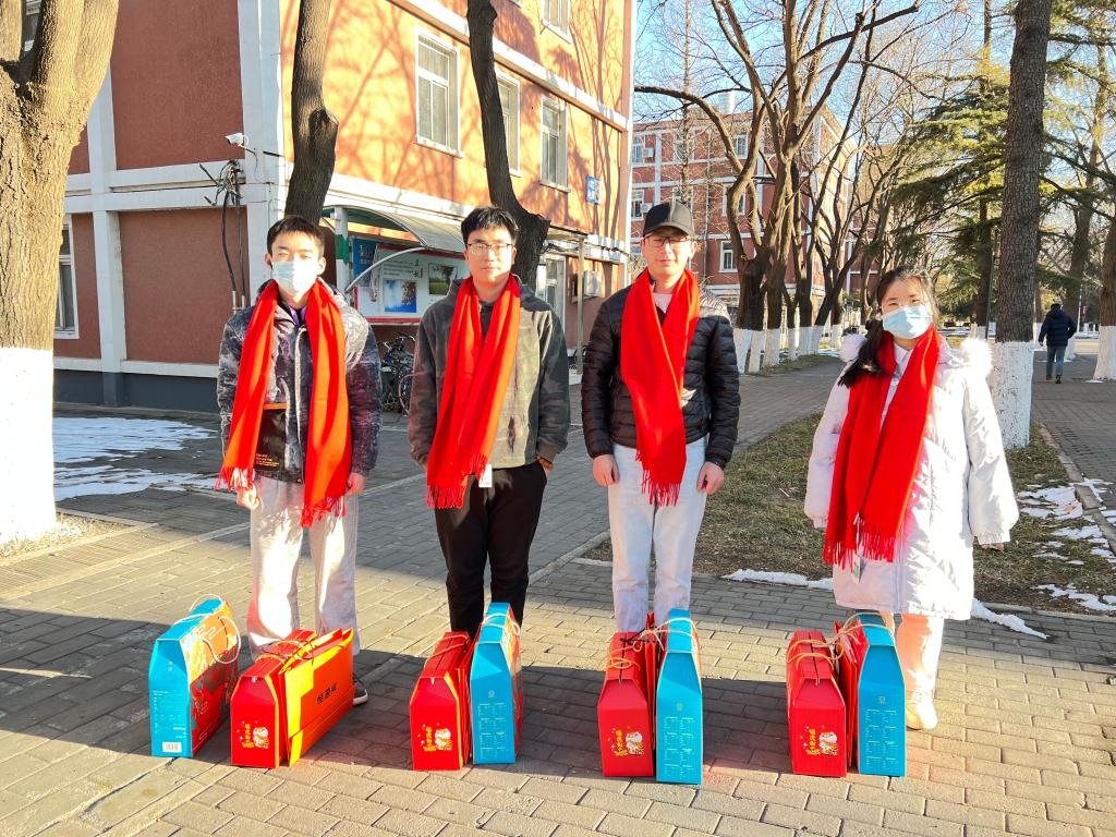2022年新春佳节来临之际,1月29日上午10点半,文发学院院长韩芳、科研副院长夏龙、教学副院长龚刚强、永利集团副院长李云乐、辅导员安利清前往学生宿舍亲切慰问了寒假留校的本科生与研究生们,为同学们送去学校和学院的暖心大礼包。