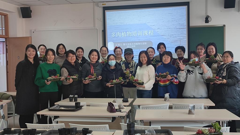 为传递绿色生活及生态理念,陶冶教职工情操,丰富教职工的精神文化生活,2021年12月22日,文发学院组织开展教职工园艺体验活动。本次活动邀请繁花部落多肉植物生活馆园艺导师进行多肉植物培训,学院教职工积极参与,现场气氛轻松愉快,其乐融融。