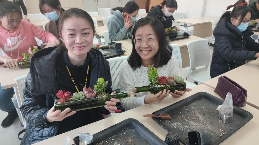 通过此次园艺体验活动,老师们不仅学习了植物养护知识,享受了制作多肉盆栽的乐趣,还丰富了业余文化生活,美化了办公环境,同时缓解了期末紧张繁忙的工作压力。老师们纷纷表示运用园艺操作活动以及植物所构成的绿色环境能有效改善身心状态,维持和增进健康,提高工作生活质量。