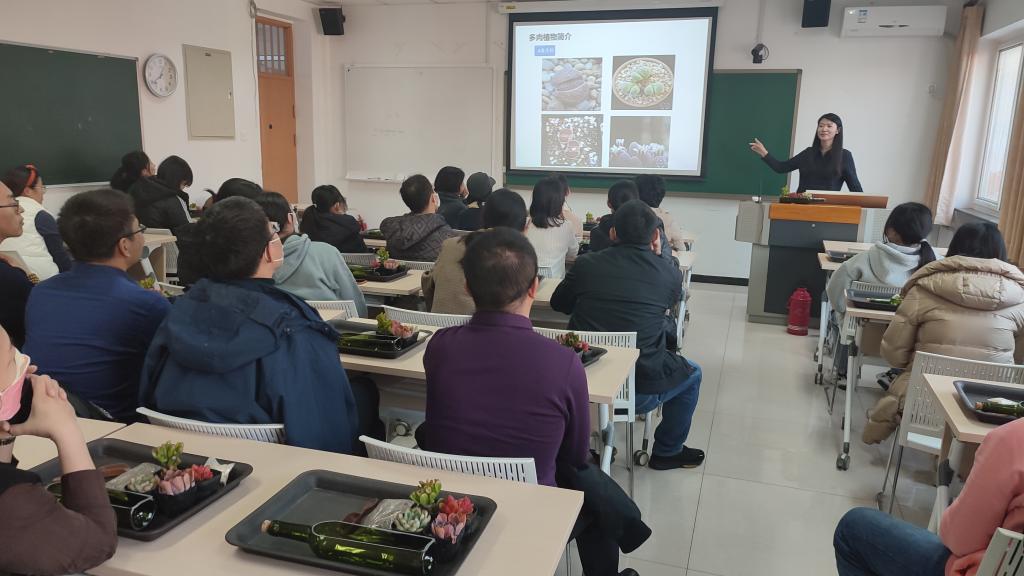 徐老师采用理论与实际操作相结合的形式,由易到难、由浅入深地向文发学院的教职工们讲解了多肉植物的习性,介绍了种植多肉的基本艺术技巧。同时就如何修剪根枝,摆放造型等内容进行了现场指导。老师们的笑容与一盆盆充满生机的多肉作品,为寒冷的冬日增添了一股暖意。