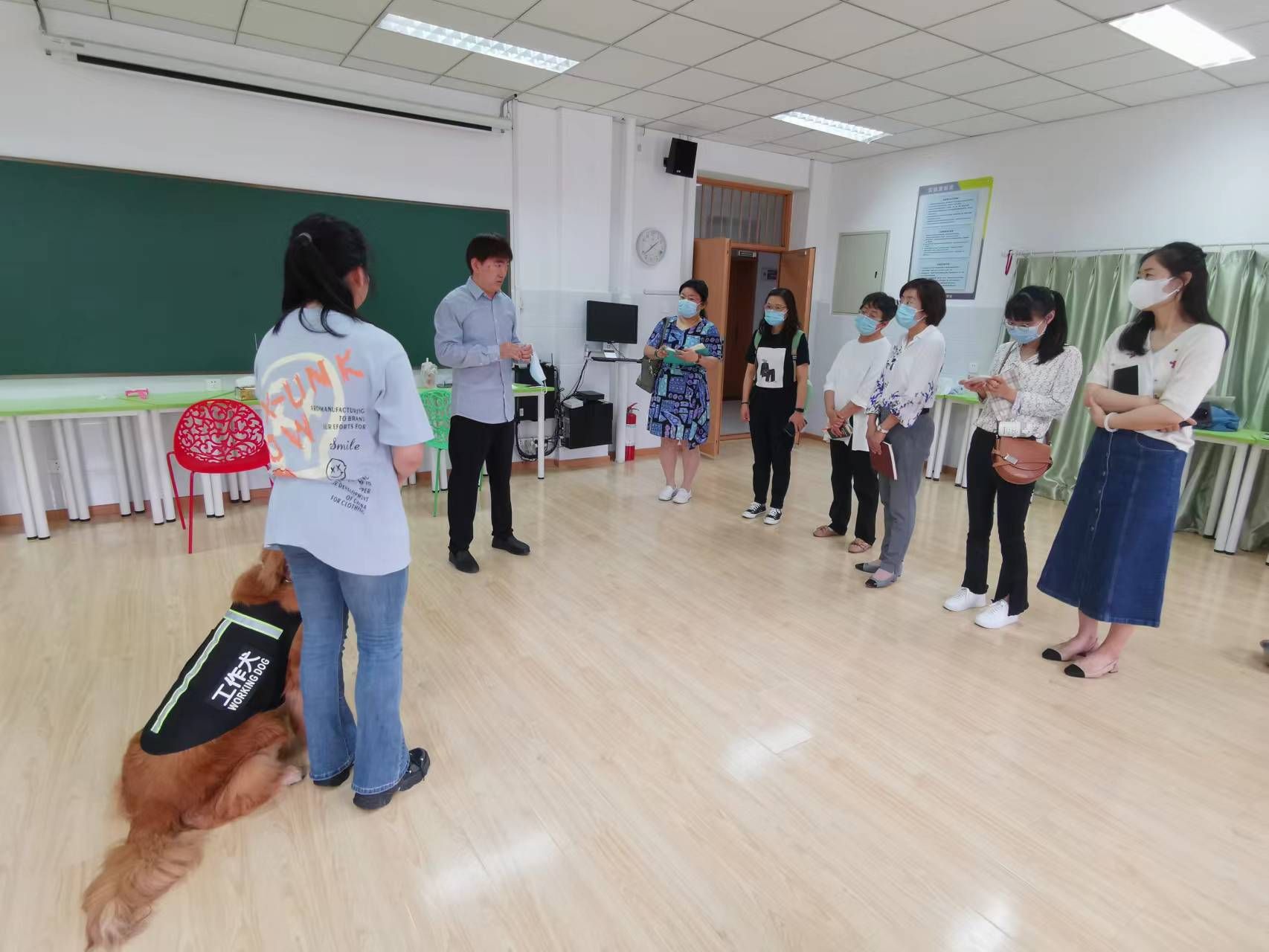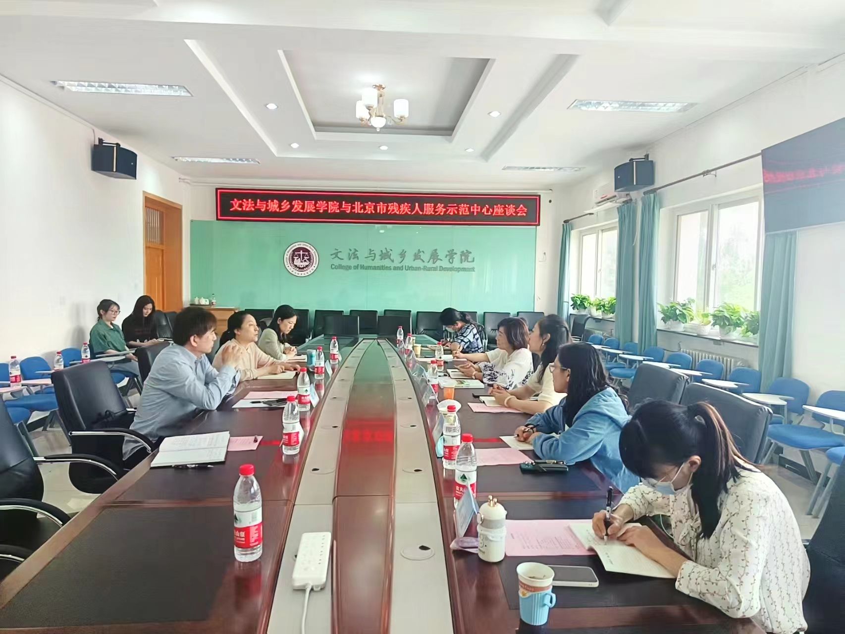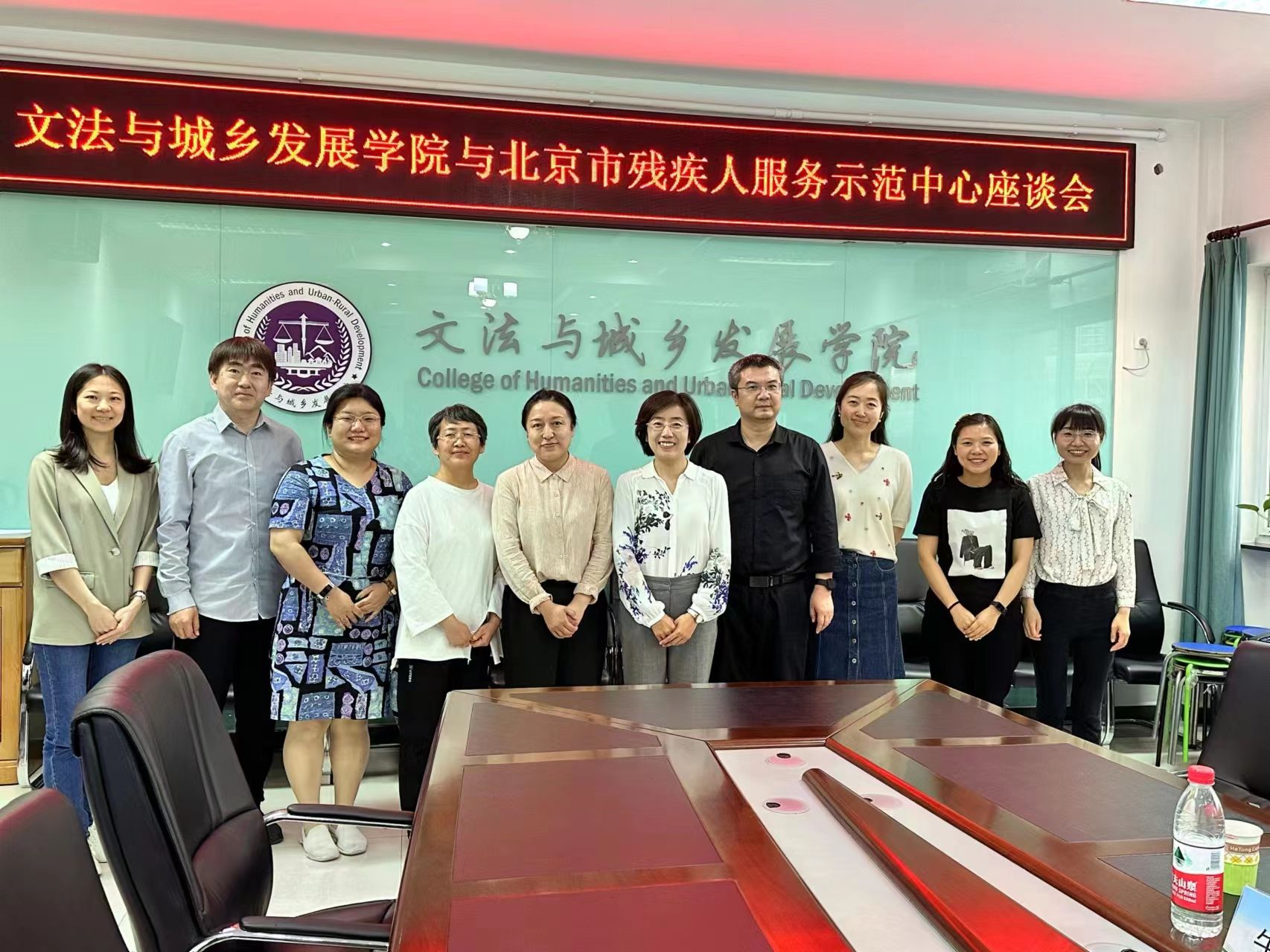 首先,社会工作系主任胡勇为工作团队介绍学院情况、社会工作系发展历程以及残障社会工作等建设亮点,其中,为残障人士提供陪伴服务的工作犬成为一道靓丽的风景线,吸引参访团队的极大关注。紧接着,双方开展深度交流座谈,学院党委副书记、院长韩芳,科研副院长夏龙先后对学院情况、专业建设等工作进行了详细介绍。王丽莎副详细介绍了北京市残疾人服务示范中心情况并向学院师生发出诚挚邀请。