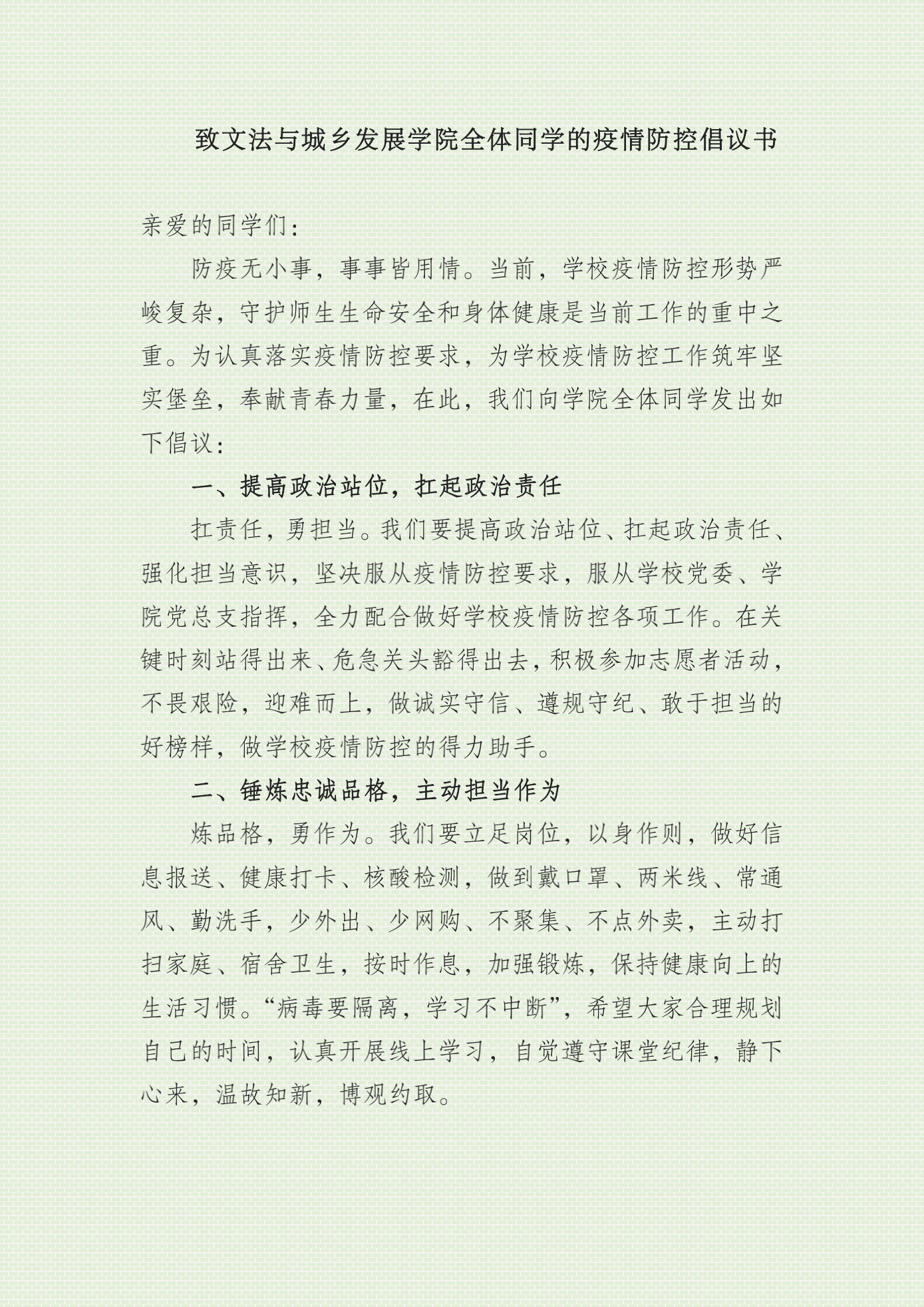 致3044永利集团全体同学的疫情防控倡议书