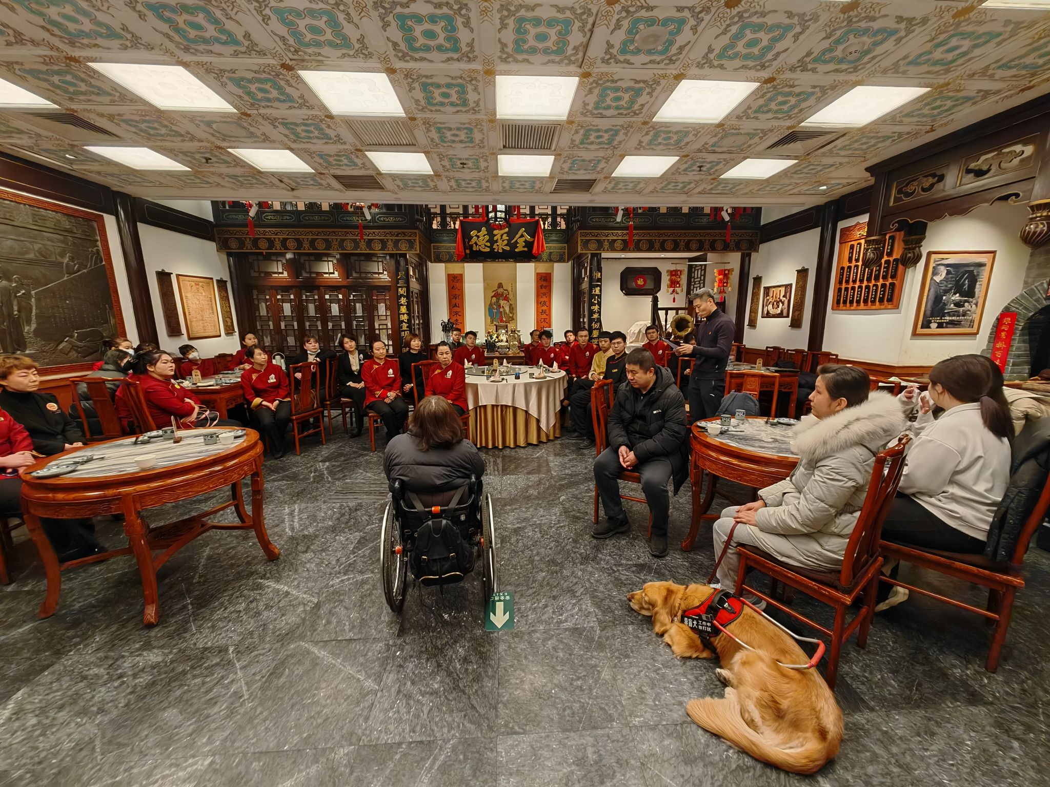为优化北京市餐饮业的无障碍环境,提升残障人士服务质量,2月28日上午,北京市残疾人联合会、文发学院社会工作系与全聚德餐饮集团联合开展餐饮服务无障碍培训,邀请轮椅使用者徐燕春老师、视障人士张冉(携导盲犬沙果)等专业老师前往全聚德饭店(起源店)开展无障碍服务培训,实地考察和体验无障碍设施环境,并就无障碍设施改善进行深入研讨。