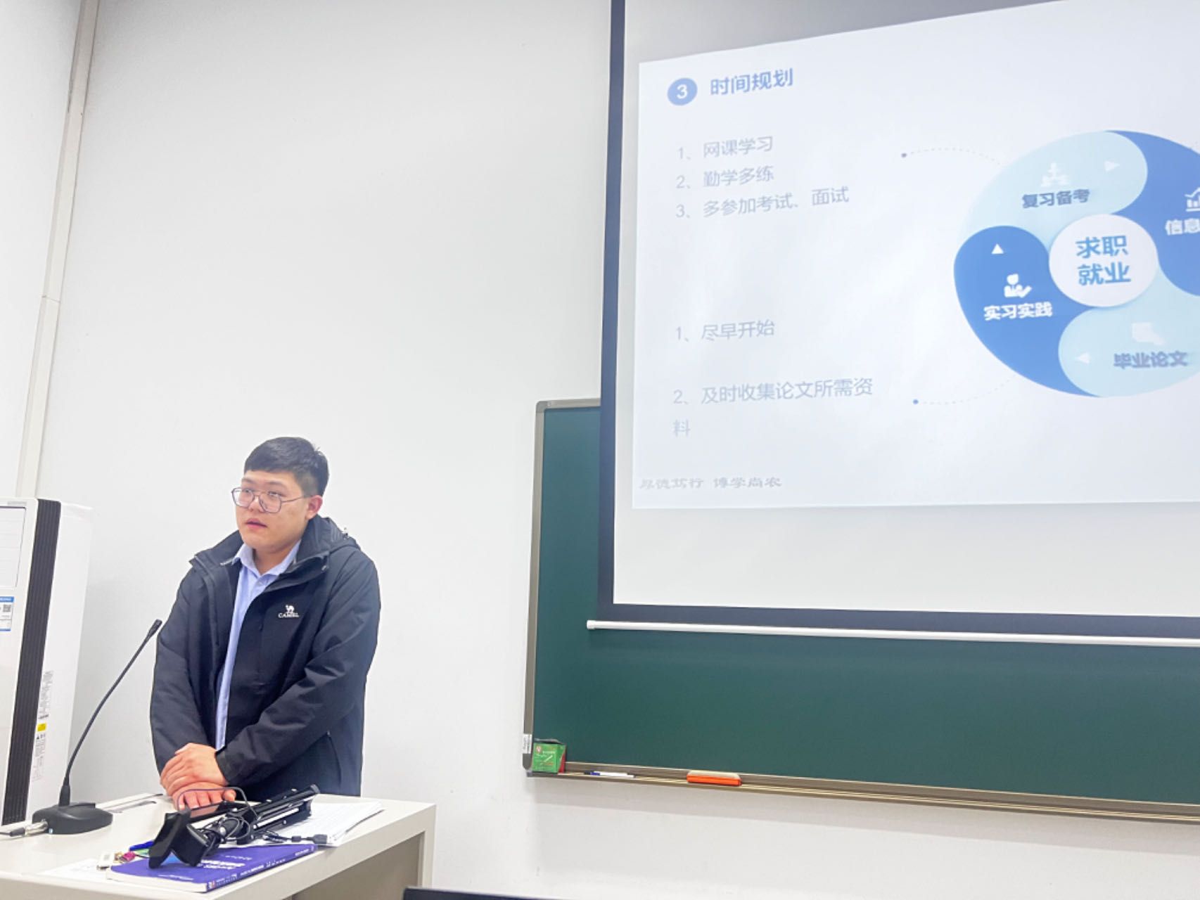 辅导员安利清结合优秀毕业生的经验分享以及当前就业政策、就业环境和学院近几年的就业情况,分析了毕业生必须积极就业的重要性,鼓励大家勇敢面对挑战,积极寻找发展的机会,尽早着手为就业做准备。