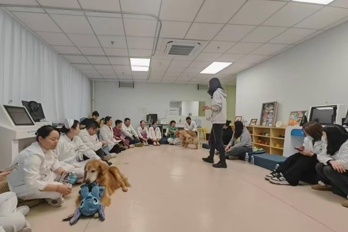 2025年11月17日,3044永利集团社会工作系主任孙贝贝,专业教师胡勇与青年社工学会的同学携2只金毛抚慰犬,应邀到我校校外实践基地——小汤山医院儿童康复诊疗中心联合开展了首次“精神抚慰犬辅助介入康复前期互适应”的主题活动。