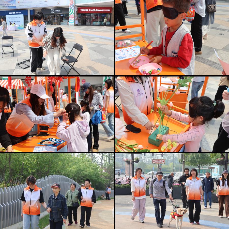 为更好地宣传推广无障碍环境建设理念,提升全社会对导盲犬的认知,文发学院60余名学生志愿者自主策划并组织了11个互动体验活动与2个宣传展示活动,同时为视障人士提供全程陪护服务。社会工作专业师生发挥专业优势,设计了蒙眼体验、互动科普、触觉感知等环节,引导公众沉浸式感受视障人士的日常生活,普及导盲犬相关知识;会展经济与管理专业师生则负责展示区工作,集中呈现导盲犬主题文创产品,以创意设计传递公益理念。此外,近20名志愿者为视障人士提供一对一陪护、路线引导等服务,保障其顺利参与各项活动。